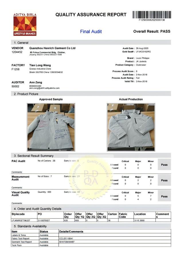 Quanzhou Henrich Garments Co.,ltd was bron at 2003. Henrich Garments has more than 20 years in international garments developing,sourcing,manufacturing and other OEM&ODM import and export service. We have 2 fully own factory located in Shishi, the international texitle market. we have 300 skifull workers,7000m2 workshop,20 production lines,with monthly capacity 50000pcs jackets. Henrich Garments has it's own design team. We can support the customers from different market by our new design and prompt delivery for samples.