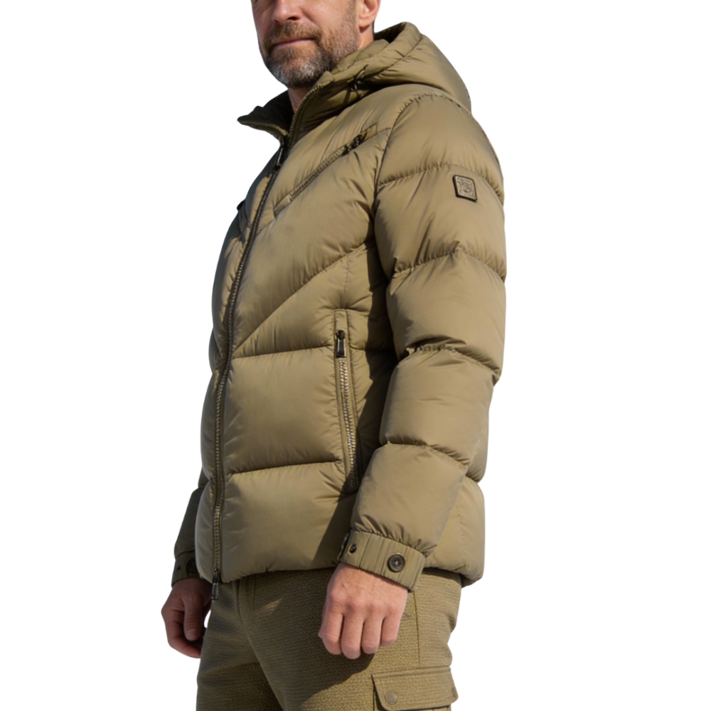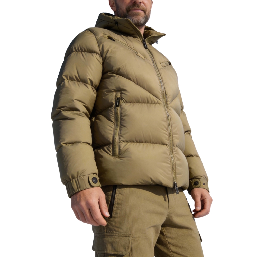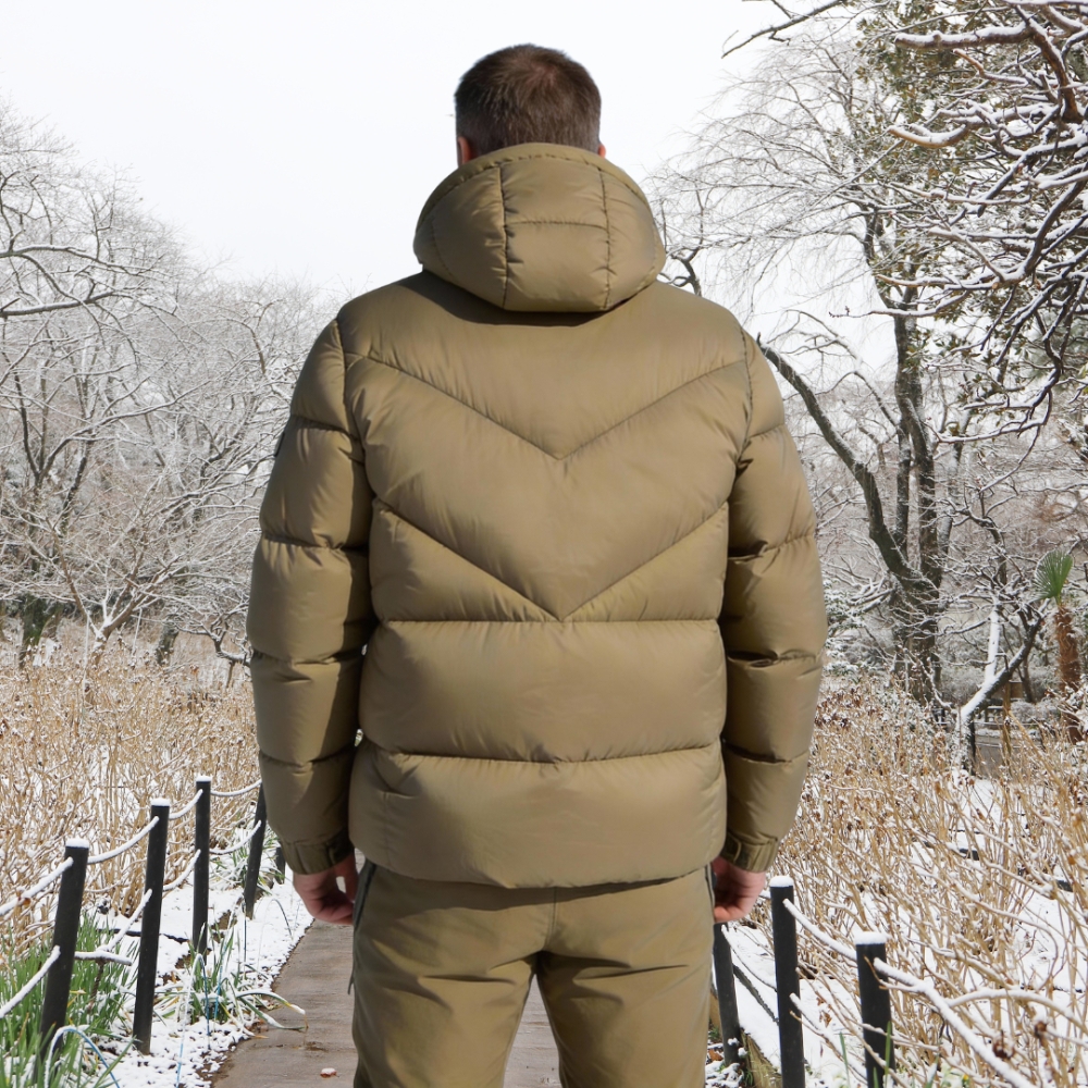 : Sleek olive down puffer design suits both daily casual outings and light outdoor activities (walks, errands).