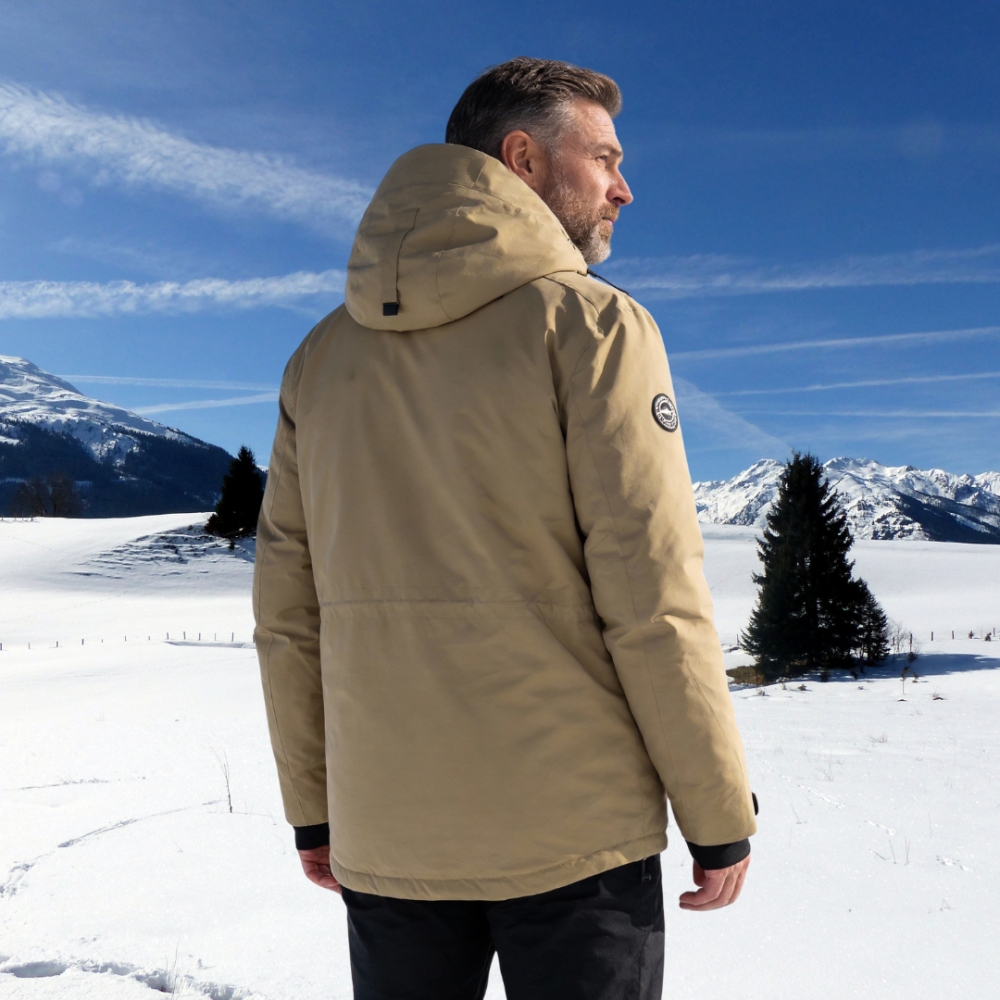 : Adjustable hood, secure pockets, and fitted cuffs provide practicality for storing ski gear and blocking cold air.