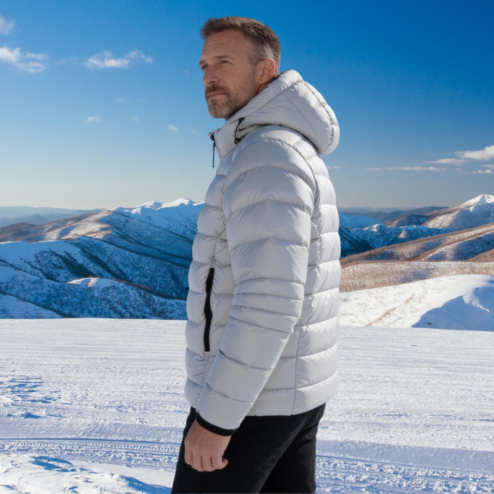 Modern Versatile Style: The neutral light grey hue and sleek padded lines blend seamlessly with casual urban outfits and outdoor gear, ensuring year-round wearability.