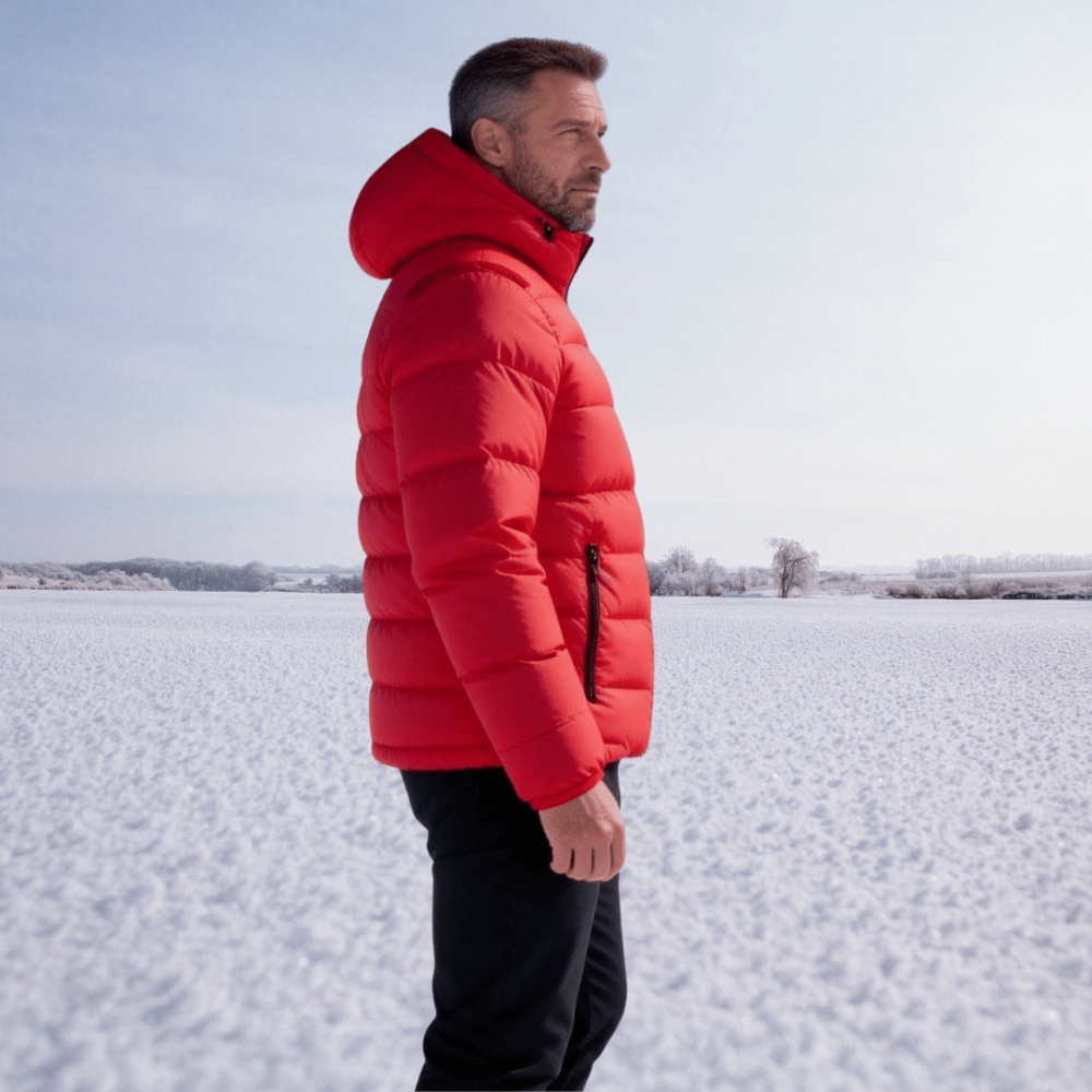 Bold Versatile Style: The vibrant red hue and clean padded lines make a striking visual statement, pairing seamlessly with jeans, chinos, or activewear for year-round versatility.