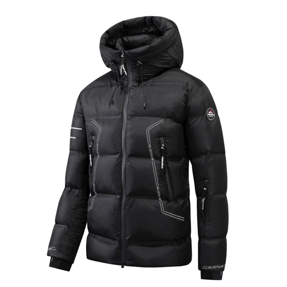 This insulated parka features a bold color block design, water-resistant fabric, and multiple zippered pockets for warmth, style, and outdoor functionality.