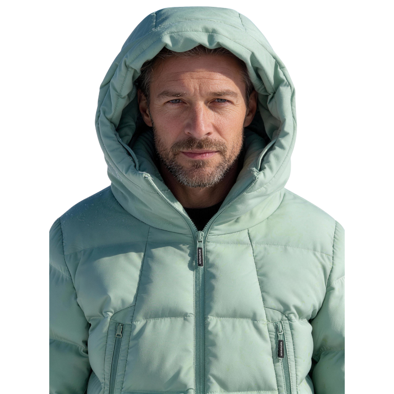 Integrated insulated hood offers extra warmth and protection against wind and cold, enhancing overall comfort.