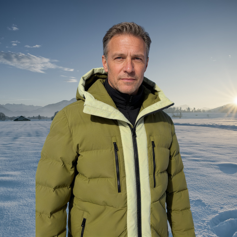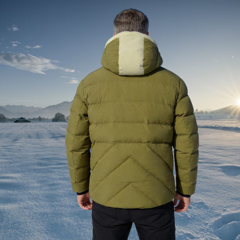 | Description | Men's hooded puffer ski jacket |