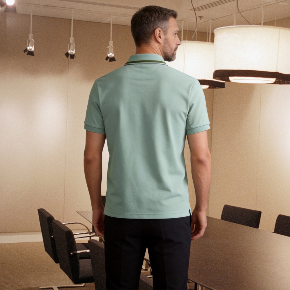 Contrast Collar Detail: Subtle dark-green trim on the collar adds a sophisticated, layered touch that elevates the classic polo silhouette.